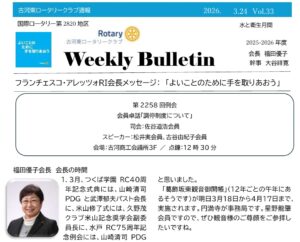 第2250回例会 週報 2026年1月24日 最終更新日時 : 2026年1月24日 admin 古河東ロータリークラブ週報 V0l.25ダウンロード \ 最新情報をチェック / FacebookXBlueskyHatenaPocketCopy